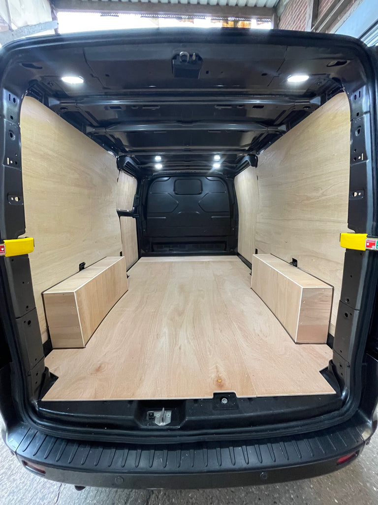 Ford Transit Custom Ply Lining Kits, Plywood Racking, Door Locks, Roof Bars/Racks, Steel Storage, Pipe Carriers.