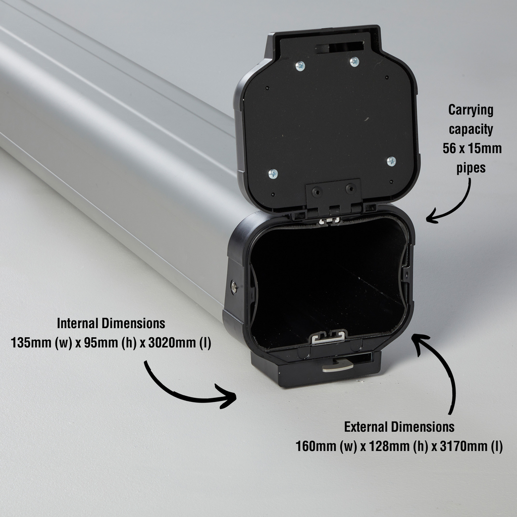 The Van Guard 3m lined Maxi Pipe Carrier with rear opening, PVC lined, carries up to 56 x 15mm pipes, it is a universal product in terms of design & fitting